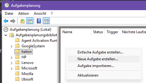Als nächstes kann in der Windows Aufgabenplanung ein neuer Ordner angelegt werden: